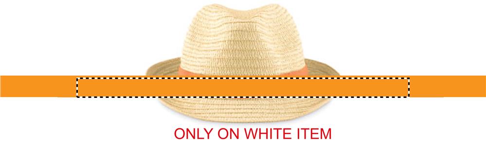 Papieren strohoed. Met polyester band. Bij onbedrukte orders zal de band los meegeleverd worden.