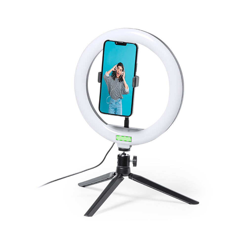 erlichtingsset. Inclusief lichtring, tafelstatief, en vloerstatief met verstelbare hoogte tot 180cm. 120 LED's, met 3 verlichtingsstanden en 10 instelbare lichtintensiteit niveaus. USB-voeding. Kabel met controller en afstandsontspanner inbegrepen. Gepresenteerd in een aantrekkelijke ontwerpdoos.